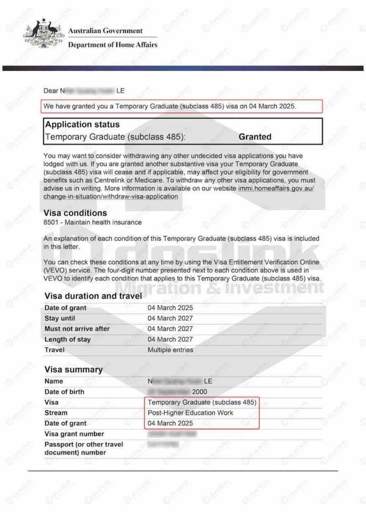 Visa 485 là cánh cửa quan trọng giúp sinh viên quốc tế tiếp tục ở lại Úc để làm việc sau khi tốt nghiệp. Trong bài viết này, chúng ta sẽ tìm hiểu về hành trình xin visa 485 của bạn H.Lê – một trường hợp thành công với thời gian xét duyệt cực nhanh, chỉ 5 ngày làm việc.