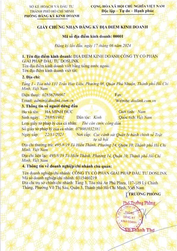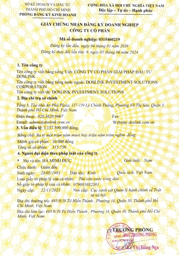 - Tên công ty: CÔNG TY CỔ PHẦN GIẢI PHÁP ĐẦU TƯ DOSLINK