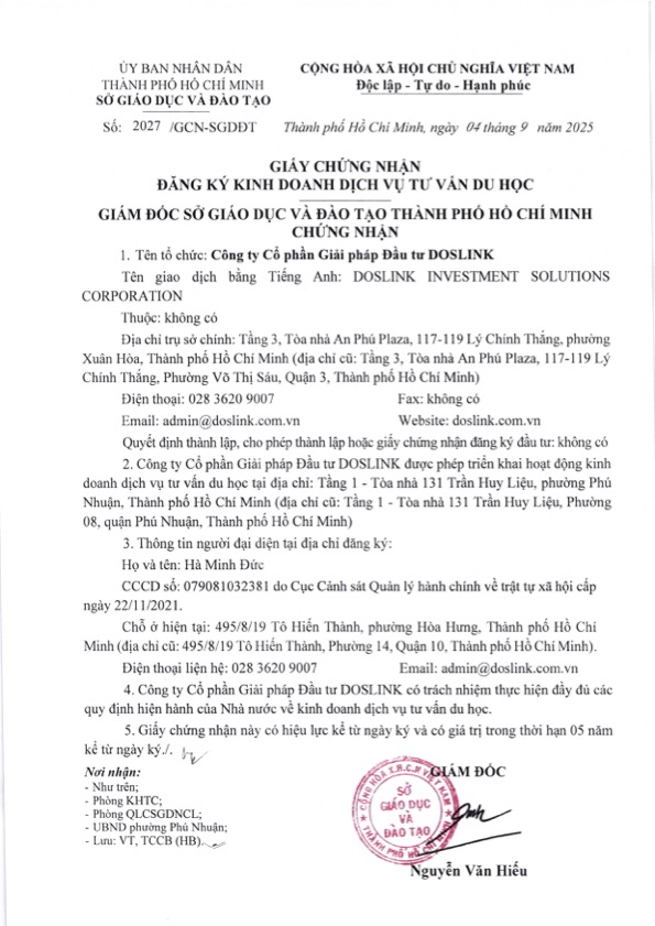 Doslink / Thông tin pháp lý & hoạt động tư vấn du học